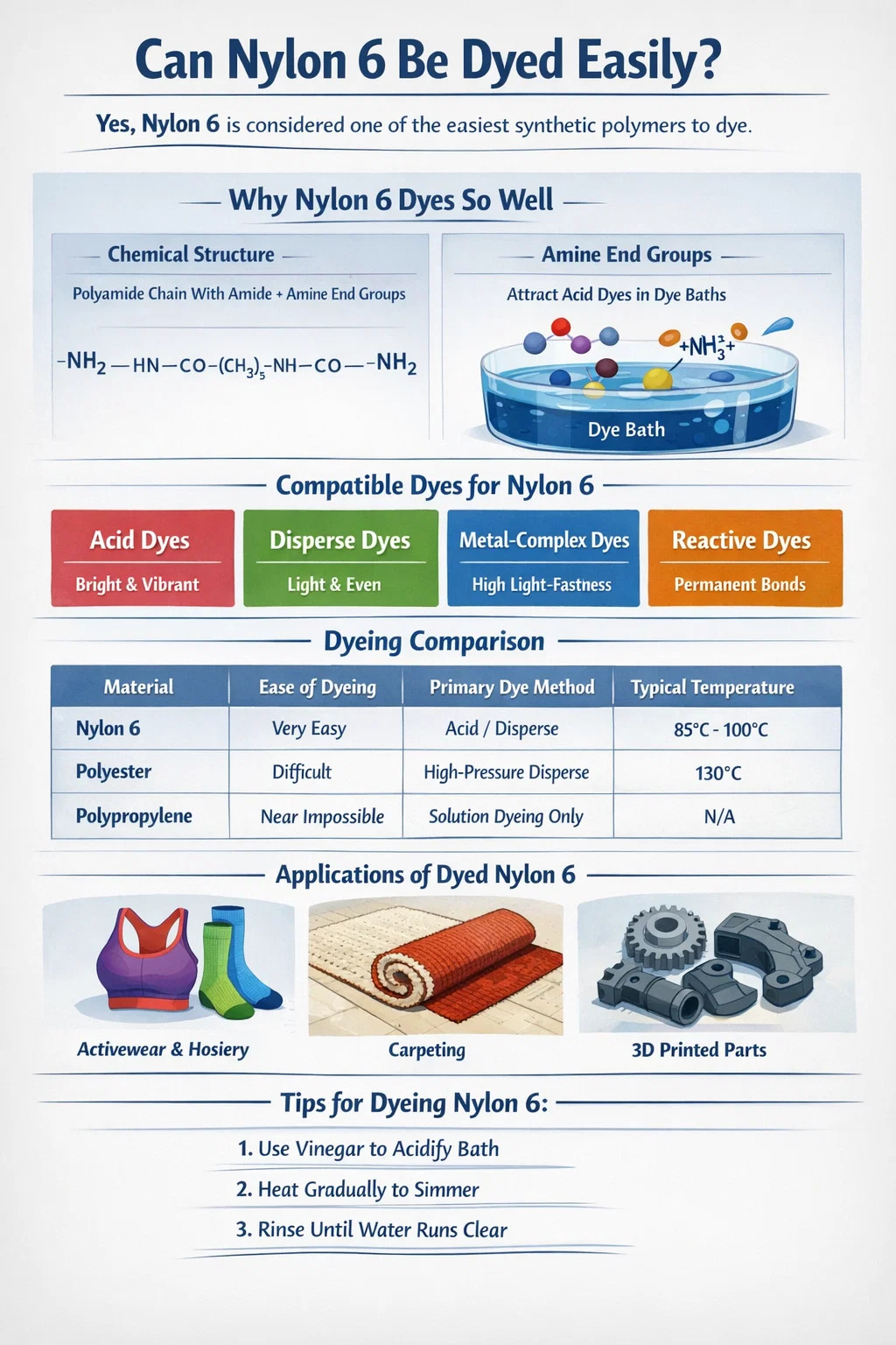 الإجابة المباشرة: هل يمكن صبغ النايلون 6 بسهولة؟