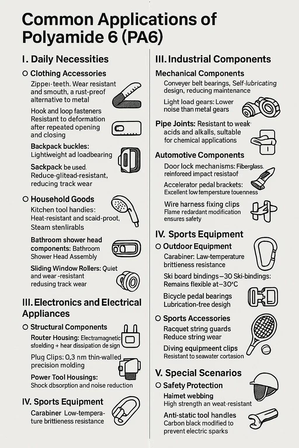 فيما يلي مقدمة للتطبيقات الشائعة لـ بولي أميد 6 (PA6):