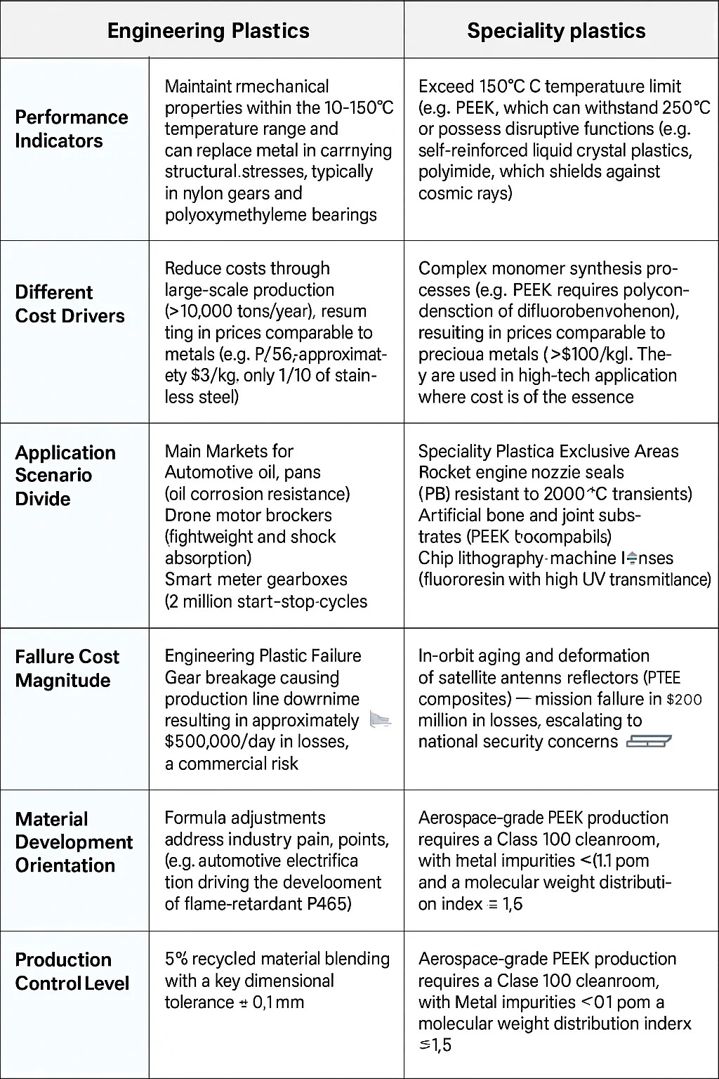 الاختلافات الأساسية بين البلاستيك الهندسي والبلاستيك المتخصص هي: