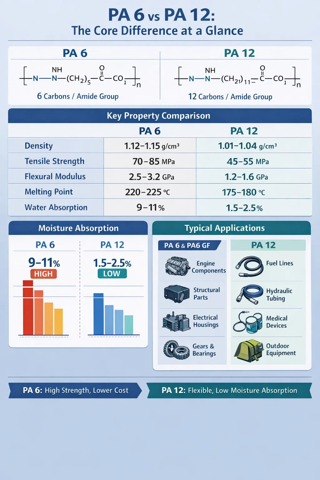 - 3 مقارنة العقارات الرئيسية: PA 6 مقابل PA 12