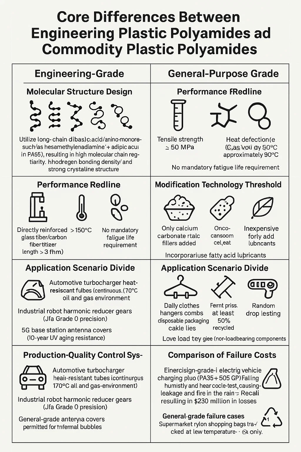 الاختلافات الأساسية بين هندسة البولي أميدات البلاستيكية والبولي أميدات البلاستيكية السلعية